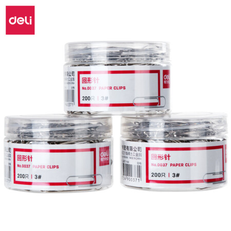 得力 deli 29mm鍍鎳回形針 3#金屬曲別針 200枚/筒 3筒裝 辦公用品 33089