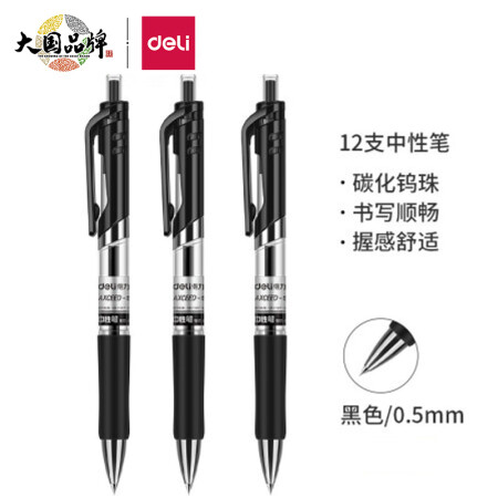 得力 deli S01中性筆簽字筆 0.5mm子彈頭經(jīng)典辦公按動(dòng)筆水筆 黑色 12支/盒