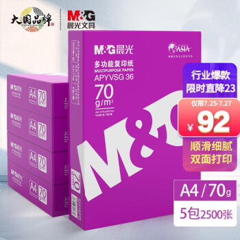 晨光(M&G)紫晨光 A4 70g 多功能雙面打印紙 熱銷款復(fù)印紙 500張/包 5包/箱(整箱2500張)APYVSG36